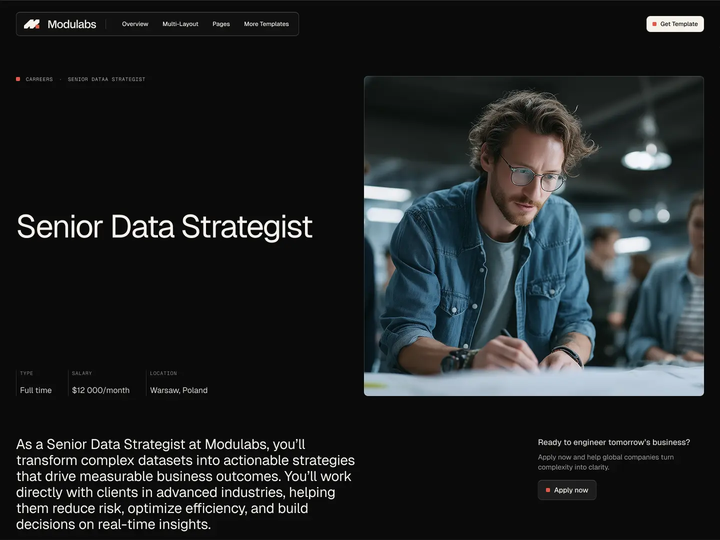 As a Senior Data Strategist at Modulabs, you’ll transform complex datasets into actionable strategies that drive measurable business outcomes. You’ll work directly with clients in advanced industries, helping them reduce risk, optimize efficiency, and build decisions on real-time insights.